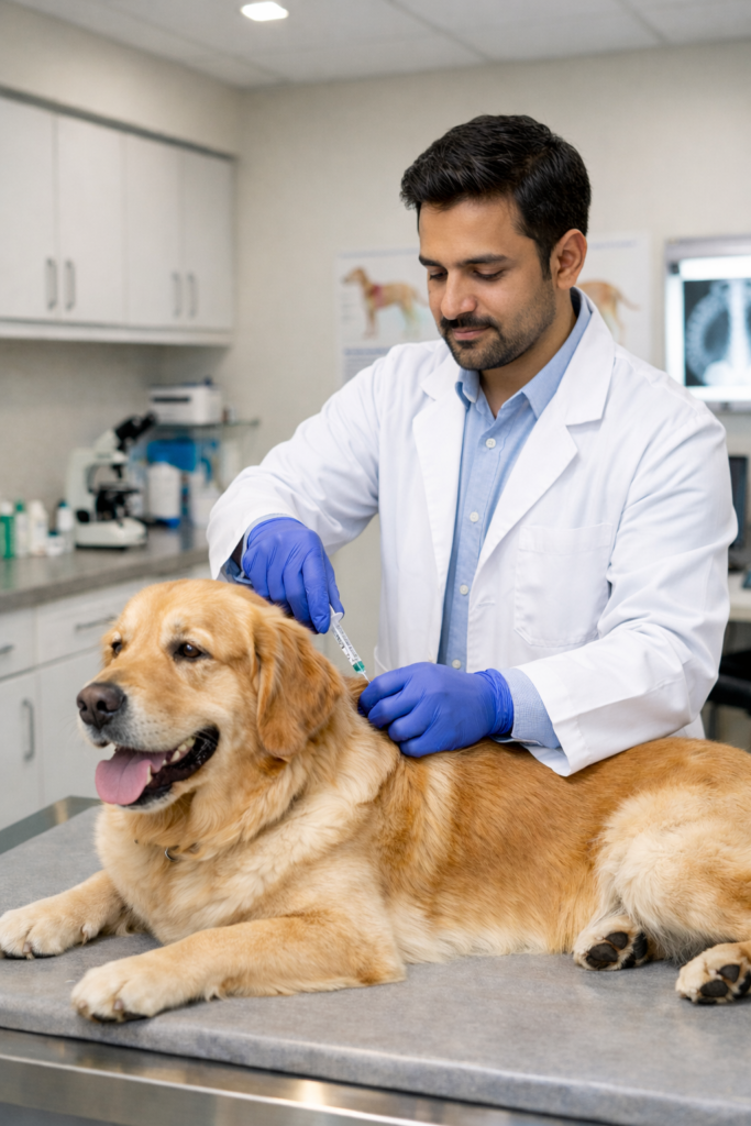 پاکستان کے موسمی حالات میں پالتو جانور مختلف وائرس اور انفیکشنز کا شکار ہو سکتے ہیں۔ ریبیز، پاروو وائرس، اور دیگر خطرناک بیماریاں صرف بروقت ویکسینیشن سے ہی روکی جا سکتی ہیں۔ ملتان میں ایک تجربہ کار جانوروں کا ڈاکٹر آپ کے پالتو جانور کے لیے مکمل ویکسین شیڈول تیار کرتا ہے اور آپ کو ہر مرحلے پر آگاہ رکھتا ہے۔